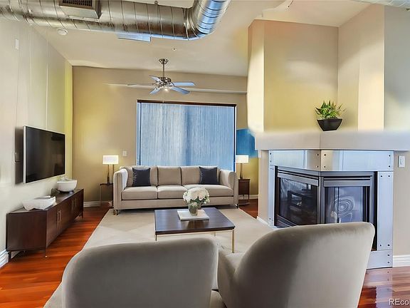 Showings to start Saturday 3/16 at noon. Beautifully maintained condo. Loft style with exposed ducting giving this a totally contemporary feel. Featuring 2 bedrooms, master bedroom suite with beautiful full bath showcasing a large shower. The living room has direct access to a spacious balcony with both city and mountain views. Upgrades include top of the line cabinets, wood parquet flooring, tile, all stainless appliances in, as well as the washer and dryer. Great one level living on the 3rd floor (great views) no steps use the elevator. 2 deeded parking spaces are included with this gorgeous home. This is a great location with dining and other retail in the building. Walk to the light rail, which is just west of the building with a pedestrian bridge across I-25. Light Rail station. Must see!