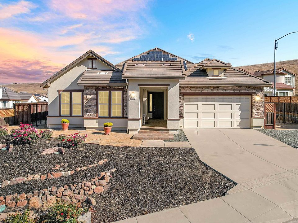 Nestled in the tranquil Schaefer Ranch neighborhood, this stunning 5-bedroom, 3.5-bathroom residence offers an exquisite blend of luxury, privacy, and natural beauty. This single story home spans 3,010 square feet and is on a generous lot, over 1/3 of an acre. The property backs up to the Dublin Hills Regional Open Space Preserve, providing panoramic views and trails nearby. Step inside to discover a warm and inviting layout with abundant natural light. The heart of the home is the spacious living room, which flows seamlessly into the gourmet kitchen and dining room, perfect for hosting family gatherings or intimate dinners. In the primary suite, you will find separate vanities, a deep soaking tub, a walk-in shower and a large walk-in closet. The additional bedrooms are generously sized with the 5th bedroom (or office?) conveniently located off the kitchen and another ensuite bedroom for guests or family members. Other amenities include indoor fire sprinklers, owned solar, and built-in surround sound in the living room. Outside, the private yard beckons with endless possibilities and there’s even room for a pool. Your dream retreat awaits!