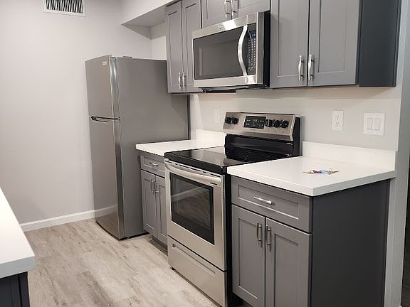 This is a 55+ community. One tenant has to be at least 55 and no one under 19 can live here. Newly remodeled in 2023, new flooring, freshly painted, new cabinets throughout, new tiled master bath shower, new lighting and ceiling fans throughout. All popcorn ceilings have been removed even in the garage. All new appliances in kitchen including refrigerator. Washer & dryer are included in the laundry area of the 1 car extended garage. A second refrigerator is in the garage and can stay if you like. Yard maintenance is cared for by the HOA. The recreation center is a few minutes walk behind the home and it includes a large game room, full kitchen, pool table room and mostly year round heated pool and spa. Washer & Dryer and garage refrigerator are not included in the rent, so should they need repair it is up to the owner to decide to repair or remove them.