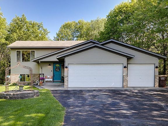 Cute and cozy move in ready 3 bedroom, 2 bath home on 2.82 wooded acres! Enjoy your own hiking path on your property! Huge picture window in living room, breakfast bar and stainless appliances in kitchen, access maintenance free deck from dining area. Two bedrooms on upper level and walk-through bath to master bedroom. Lower level has family room with walk out to fenced area in back yard, additional bedroom, full bath and huge laundry/storage room. Heated and insulated 3 car garage, new storage shed, in ground sprinkler system, extra driveway perfect for RV parking. 2.8 acres of woods for your privacy!