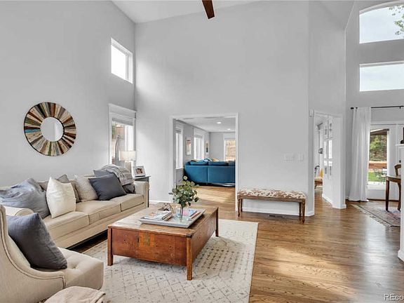 Stunning updated home in Kentley Hills neighborhood of Highlands Ranch! The home sits on a large lot near Heritage Elementary School. Gorgeous hardwood flooring throughout the main level leads to an open kitchen and dining area with new dishwasher, upgraded cabinets and lighting, custom backsplash and wood shelving. High-end granite counter tops are carried through to the bathrooms in the home, creating a seamless feel. Newly extended laundry/mud room from garage entry offers plenty of storage space. High ceilings and open concept throughout the main floor make this home extra spacious and bright. New 400 square foot living room added in 2018 allows you plenty of space on the main floor. French doors lead to an outdoor haven with new concrete covered patio and landscaping, including a new sprinkler system and retaining wall. Front room includes a remodeled stacked-stone fireplace and wood mantel. There are 3 bedrooms upstairs featuring a spacious, newly tiled master bathroom and walk-in closet. Basement area finished in 2016 includes storage room, living area and 3/4 bath. Tons of usable crawl space for additional storage. All new paint throughout. New roof in 2016 and new furnace, AC, and air purifier added in 2018. Several windows have been replaced including the large master window, and main floor windows have custom trim. This one is move-in ready and waiting for you!