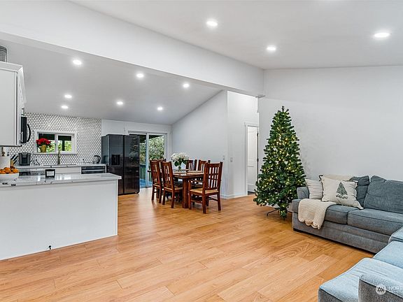 Step into this beautifully updated 3-bed, 1.75-bath manufactured home on an oversized nearly 10,000 sq ft lot, designed to feel like a single-family residence. The open floor plan offers vaulted ceilings and a seamless layout, perfect for modern living. The kitchen shines with quartz countertops, new cabinets, appliances, and a stunning backsplash. The oversized primary bedroom features a spacious en suite bathroom, while two additional bedrooms and another bathroom are located on the opposite side. Both bathrooms have been updated with newer tile and vanities. Laminate flooring runs throughout the living and bedroom areas. Enjoy a large backyard, ample driveway parking, and a convenient location near Paine Field, Boeing, schools & shops.