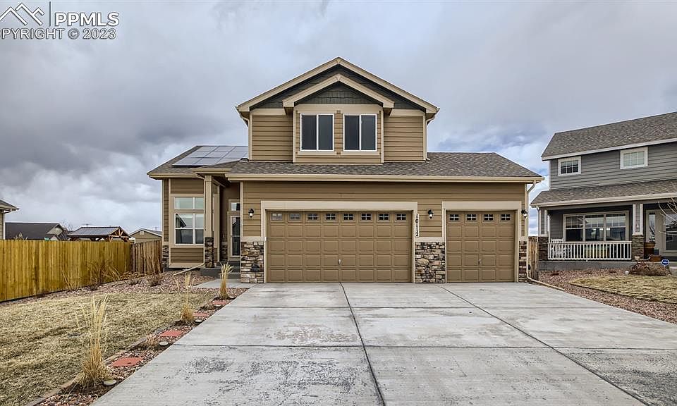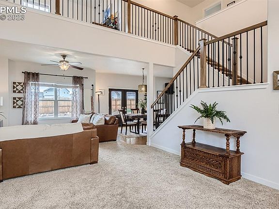 Make sure you check out this beautiful 3 bedroom, 2.5 bathroom home in a highly-desirable, no HOA, Paint Brush Hills neighborhood! Walk into a beautiful wood entry with soaring ceilings and a bright and open living room with huge windows. With hardwood floors in the dining room and natural lighting, you will have the perfect set up for entertaining. The kitchen will wow you with the hardwood floors, cabinets, stainless steel appliances, granite countertops and open concept! Rounding out the main level, you will find a convenient powder room & laundry room. Heading to the upper level There is a loft space at the top of the stairs - Perfect for your home office or play/reading area! 2 spare bedrooms with walk-in closets and a full bathroom in between. The huge master retreat has vaulted ceilings, a walk-in closet, a large window with tons of natural light. The attached 5 piece, master bath has a double vanity, soaking tub, and walk-in shower. Even more space in the unfinished basement, which has been pre-plumbed for an additional bathroom, there is plenty of potential! This home also has central air, humidifier, solar panels, a 3 car attached garage. This home comes with more amazing views and a great backyard with a dog run. Located in Peyton with easy access to military installations, award winning District 49 schools, shopping, restaurants, parks, hiking and more! This is a must see!