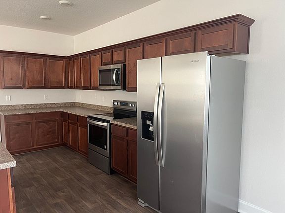 BRAND NEW HOME Small but spacious sub community this 2202 sq ft floor plan on a corner lot. Impressive 4 bedroom, 2.5 bathroom home is looking for its 1ST RENTER . WOW Factor as you enter the foyer of home with high ceiling! Large great room that looks onto kitchen with island, 30' cabinets with crown molding, walk in pantry, spacious dining room. Spindle handrails leading upstairs to all bedrooms. Master bedroom retreat with a very generous walk in closet, master bath with separate walk in shower, soaking tub, double vanities with laminate countertops for easy care. Spacious third and fourth bedrooms. All walk in closets . Don't wait, you could be in this home before the winter Move in ready by the end of October Utilities and lawn care is not included in Rent and at the time we are not accepting vouchers.. message me and come see it today.