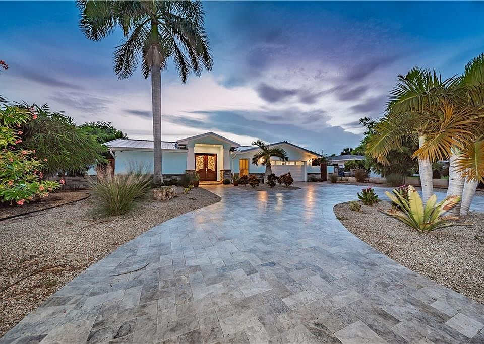 WATERFRONT Dream Home new on the market! COMPLETELY RENOVATED from top (new Metal Roof!) to bottom (all new plumbing/electrical!) and everything in between ... with the most spectacular sunsets, sparkling water views and a short bike ride to one of the most magnificent beaches that Florida has to offer. Join us on a tour of the this beautifully appointed 3 bedroom+ office, 2 1/2 bath, 2 car (with AC!) garage ranch home on PARADISE ISLAND in Treasure Island. Custom xeriscape tropical landscaping, TRAVERTINE drive and MAHOGANY double doors say "welcome home" as one steps into the serene and panoramic views of the BOCA CIEGA BAY from nearly every space in this open concept designed home. Flowing living spaces embrace the heart of the home with a beautiful Cambia Quartz island and Varaluz Reclaimed Shell pendant as the centerpieces (Island includes Blanco Diamond Super Single undermount sink and prep sink, as well as Instant Hot water). Surround-sound in the main living areas. Crown molding, pocket doors and porcelain slate-style flooring throughout entire home. With 2210 square feet; 3 bedrooms are set apart nicely for privacy and comfort. Owner's Retreat shimmers with views of the water and has its own sliding glass entrance to outdoor patio (complete with retractable Sunsetter awning for shade) and master closet with custom built-ins. Secondary bedrooms are generous in size and closet space; one is en-suite and perfect for guests. Work from home? No problem! Don't miss the HOME OFFICE, complete with glass double doors that ensure you have your water views from your desk! Kitchen is appointed with the best of appliances and finishes, including a Thermador Wine Cooler (room for 170 bottles; red and white!); GE Monogram induction cooktop, KitchenAid Black Stainless Steel appliances (French Door refrigerator, 44 dBA dishwasher, built-in convection microwave oven, double ovens, slow cooker drawer warmer and Wall-mount Canopy Range Hood. Don't miss the stunning blue glass backsplash! Custom cabinets by Artisan Cabinetry with pull-out drawers, soft-close hardware in kitchen and baths. Separate Laundry with utility sink and Electrolux Front Load Washer/Dryer. Home includes Aquasana water filtration and central vacuum system! ALL NEW windows, sliders and doors - IMPACT glass. Brand new 15 SEER HVAC system (with UV light system) for home and Mitsubishi 23 SEER mini-split for the garage! Pool sparkles and is easy to maintain with Pure Chlorine SALT GENERATOR and Hayward PoolVacXL Navigator Pro, surrounded by all new TRAVERTINE pool deck. Bring or buy your new boat - this home has a large dock and 10K lb boat lift, too. LOVE THE SALT LIFE... located on a fun, active waterway - enjoy the boaters and paddle boarders, dolphins jumping and look forward to the one of the best Holiday Boat Parades around! Call us today to schedule your showing - virtual happily accommodated if you are not nearby! This one won't last long!!