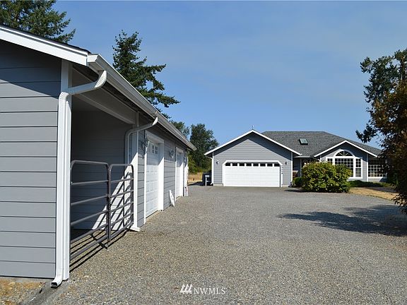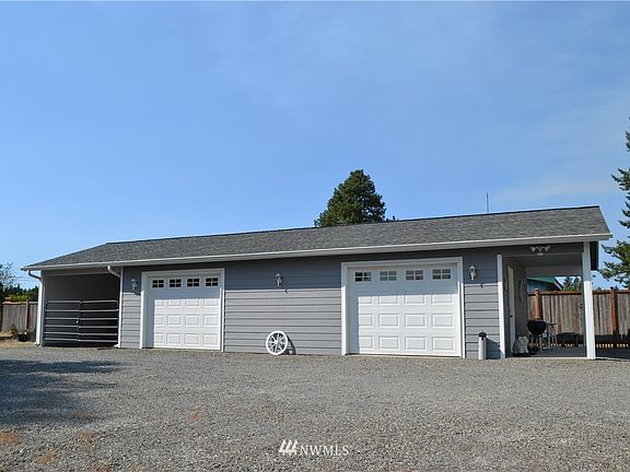 Beautiful county rambler in immaculate condition offering a view of Mt. Rainier. Over 5 acres to enjoy w great fire pit area for this summer, darling utility shed, additional detached 2 car shop/garage w carport, work space and covered concrete patio entry. Very inviting home w upgraded kitchen. Silestone counters, matching appliances, open atmosphere & great views to the backyard living area. Heat pump to help keep you cool this summer. Great indoor laundry area w sink & cabinets.