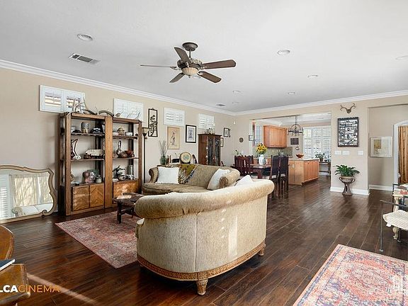 Four Seasons 55+ Community boasts resort type amenities for your enjoyment. Darling Patina/Patio home features upgrades, upgrades, upgrades! Enter through the glass door to beautiful hardwood floors, plantation shutters, crown molding, custom baseboards, a large great room with dining area open to a large kitchen. Kitchen features SS appliances, lots of cabinets. island and granite counters. Primary bed with en-suite bath featuring dual sinks, walk-in shower and arched doorways. Split wing secondary bed and guest bath. Step outside through the slider doors to your private patio for outdoor enjoyment. 2 car garage.