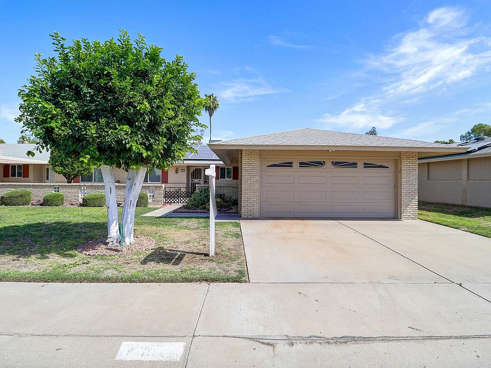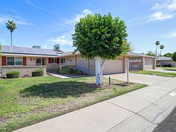 Single level home located on a North/South facing golf course lot in the highly popular Sun City active retirement community. This spacious floor plan has 2 large bedrooms, 2 bathrooms, family room, Arizona room, inside laundry, covered patio, full size 2 car garage and owned solar panels.