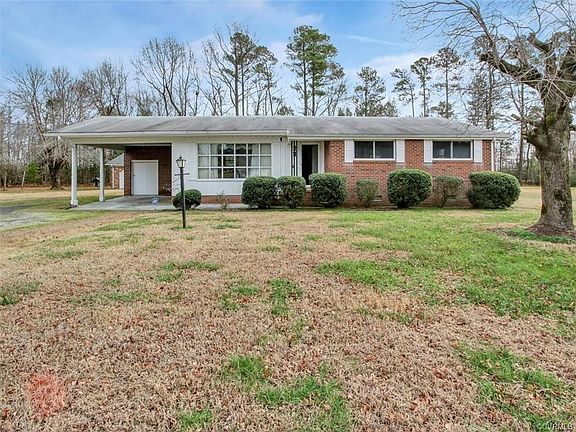 This quality brick home nestled on over 2+/- acres of wonderful yard awaits you! Several updates to include new vinyl windows, floor coverings, stove, and paint! Large living room , dining area and kitchen all with excellent flow for entertaining!! Mud room entry eliminates tracking up the house and has wonderful storage!! Master bedroom with large close - additional bedrooms with great storage as well and all new carpet!! Attached carport has an enclosed storage area - and then there is the garage!! Not just for cars - has a half bath, buck stove for heating, ac unit and 220 electrical for cook stove so you can host fish fry's and fun!! Very level yard with grape vines bordered by woods in the rear - super convenient location to Hampton Roads, Williamsburg and tri city area - don't miss this great opportunity! New roof on garage! PLEASE NOTE - NEW SURVEY IS BEING DONE TO ENSURE ACREAGE