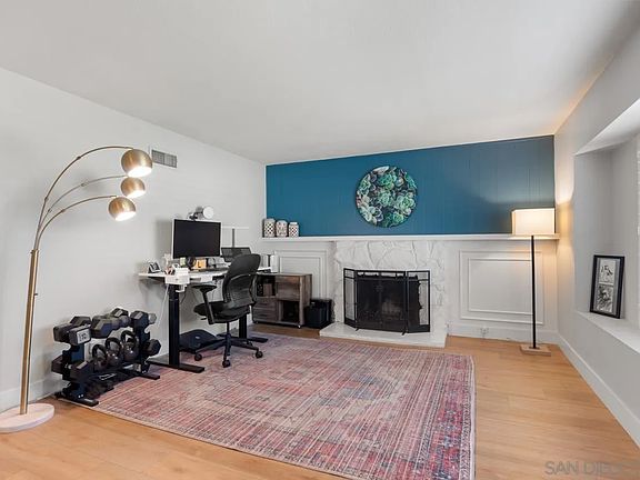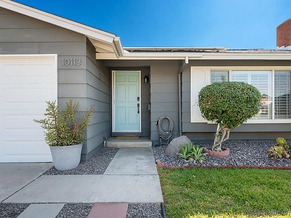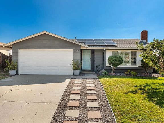 Welcome to 10113 Gem Tree Way in North Santee! Nearly every surface has been updated. The bright kitchen offers quartz counters, marble backsplash, and peninsula seating open to spacious living areas. Family room with vaulted, beamed ceilings connects to a flex room via barn doors, ideal for office, playroom, or guest space. Front living room with fireplace and shutters adds another retreat. Down the hall: three bedrooms, remodeled primary bath, mirrored closets, and LVP flooring. Garage includes workbench, loft storage, and laundry. Backyard features patio, lawn, and peek-a-boo mountain views. Move-in ready with paid solar, dedicated outlet for EV charger, Nest thermostat, central A/C & heat, plus newer roof and exterior paint. Minutes to Santee Lakes, Trader Joe’s, Target, Costco, Sprouts, library, coffee shops, Woodglen Vista Park, Santana High, and two TK-8 schools. A true East County gem! *All information is reliable but not guaranteed and should be verified by buyer before close of escrow.*