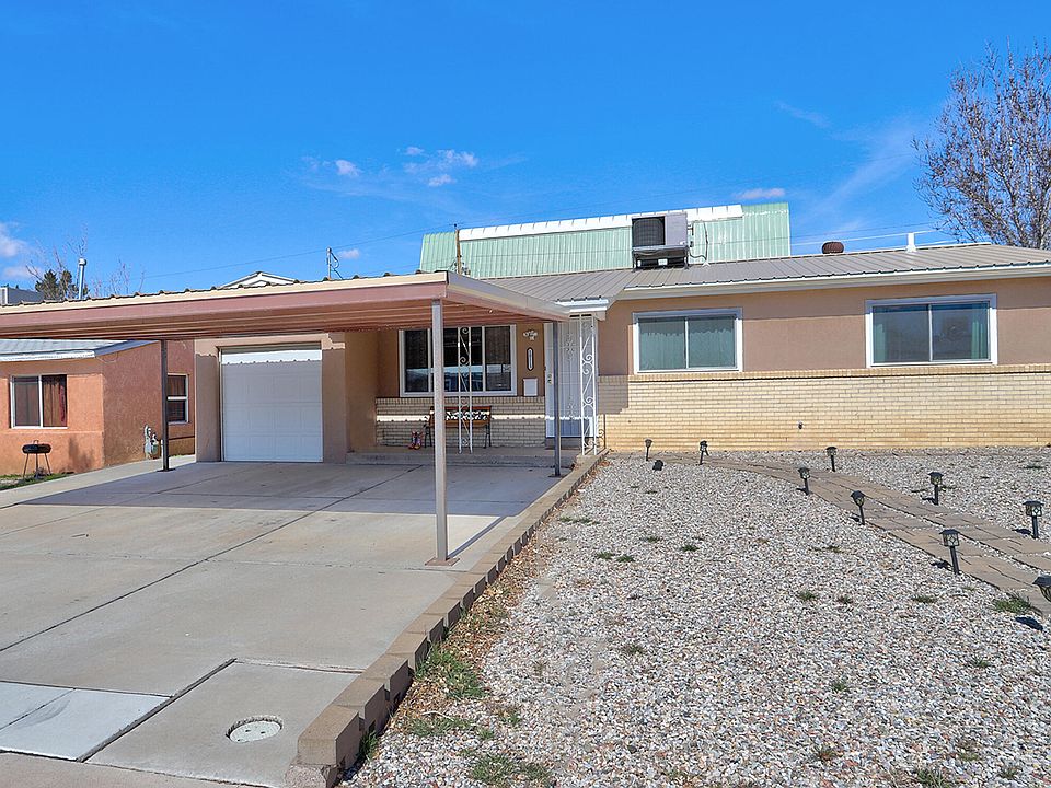 Hurry, don't miss this cutie!!! Nicely updated 3bd/2bath home. Improvements/Updates include: Metal roof(2017), remodeled baths(2016), remodeled kitchen(2020), Vinyl Windows(2008), restucco & newer flooring (just to name a few! ) Kitchen was completely redone: new cabs(soft close drawers + pullouts), granite counters, oversized tile flooring + S/S appliances. There is a one car garage with loft space for storage; laundry room with washer & dryer plus a large covered patio/deck in the backyard. There are some Sandia Mtn. views too! Storage shed + contents conveys. Carport for 2 cars in front with low maintenance front yard. Close to shopping and conveniences. Just a great ABQ location. Clean and ready to go...come visit and write an offer!