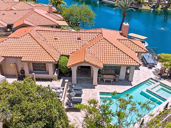 But the real magic lays beyond the doors: a lakeside backyard oasis, embracing imported Turkish stone and perched on a rare peninsula lot. Here, one could sip wine on the private dock, dine under the stars with water views that shimmered like Tuscany, or lounge by the heated pool and soak in the serenity. Days could be filled with boating, fishing, kayaking, or paddle-boarding, while evenings bring front-row seats to boat parades and community events. Life is effortless in Monterey Point. Close to conveniences, entertainment, the best dining, shopping, freeway and Scottsdale attractions are just moments away.