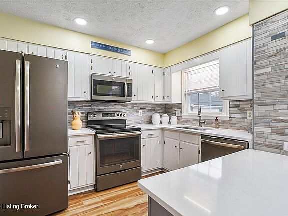 This four-bedroom tri-level home in the heart of Chenoweth Hills has been filled with love and wonderful memories for the past 30 years. Not only has this home been meticulously maintained over the years by its owners, but it has had many recent updates as well. The warm and inviting flow to the house, updated kitchen, large corner lot, and spacious and private backyard are just some of the many reasons you will not want to miss this one. As you enter the home, you are immediately greeted with a dining room that boasts Brazilian hardwood floors, a beautiful chandelier, and lots of natural light. This room could easily be a second living room or a den as well. Pass through to the kitchen which has recently been updated (2021) with quartz countertops, tile backsplash, newer appliances (2017), and warm paint choices. The highly durable luxury vinyl flooring was also installed with the updates and runs throughout most of the house. The eat-in kitchen has a farmhouse feel with its chair rail, beadboard wainscoting, and double window looking out into the spacious backyard. The ground floor level has an inviting family room complete with wood burning fireplace, brick surround, and lots of storage space in the crawl space under the kitchen. There is a half bathroom in the laundry room as well as a bedroom. Upstairs you will find three spacious bedrooms and a full bathroom. Attached to the home is a two car garage with an extra wide pad out front that could hold three cars. The backyard is one of the highlights of this home as it offers a working fountain, privacy fence, fire pit, large patio, and is quite large for the neighborhood. The roof is less than six years old, fiber internet is available, the sellers are leaving behind the security system which controls the rear door and the thermostat, and trash collection is included as a resident of Jeffersontown. This home is all electric (no gas).