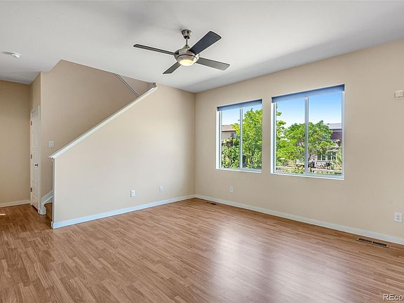 Call your friends and family; this home is ready to entertain! Beautiful three bedroom, three bathroom home with light and bright open concept floor plan merging the dining room, kitchen and living room . Mix up some drinks and prep the snacks in this stunning kitchen with granite counters, stainless steel appliances, additional island storage and gas range. Watch the big game in the spacious living room. Unwind upstairs in the primary bedroom with a walk in closet. Rejuvenate in the primary bath boasting dual sinks, dual medicine cabinets and rain water shower head. Two secondary upstairs bedrooms share a hall bath. Loft upstairs provides additional living space, office, playroom or more. Unfinished basement with opportunity to create whatever your heart dreams. Tankless water heater for never ending hot water. Located next to a greenspace/park/school bus stop and walking distance to Southlawn park, pickleball/tennis court and pool. Reunion is a bustling community with walking trails, acres of parks, a fitness center, TWO pools, a pickleball/tennis court, and coffee house with the best views ever. Loads of activities to build community including fireworks, movie nights, sports and more. Easy access to DIA, E470, I76 and Hwy 85. Low HOA fees for all you get! A corner lot, east facing driveway, and two car attached garage make this home a wonderful place to live. Don't miss this opportunity to own this gorgeous home in a highly coveted location!