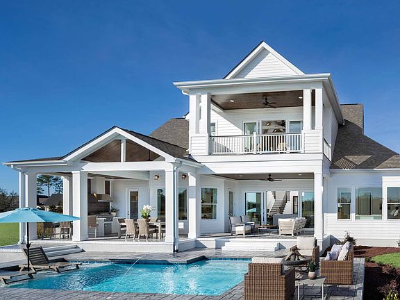 Our very popular Rodanthe plan features a stunning layout and impressive elevation with an amazing balcony off the second-floor bonus room and wrap-around wet bar ideal for entertaining and relaxing! The ceiling detail in the Master is truly original!