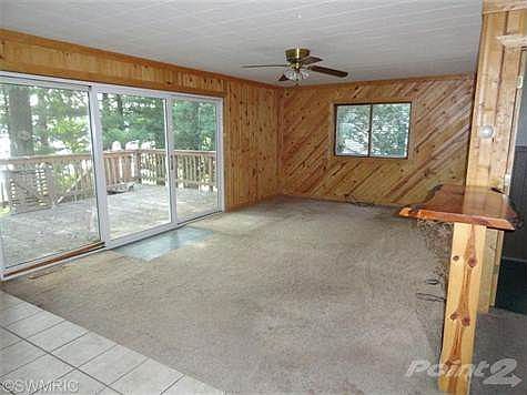 This year around home or cottage has 70' frontage on Harper Lake which is a 78 acre all sports lake. The home features 2 bedrooms, 2 baths, kitchen with large island, dining area and living room with sliders out to deck overlooking the lake. The interior has been updated with knotty pine making it the perfect Up North setting. There is a full walkout basement with the second bathroom with a Jacuzzi tub, kitchenette area and large sitting room with a fireplace or use it as the 3rd bedroom. It was all finished right down to the tile floors. Breezeway between the house and the one car attached garage. There is Federal Land right across the road if you enjoy nature walks or a great spot for some small game hunting! Ride your ORV and snowmobile to the trails! The property is bank owned and being sold as is. Possible financing with 10% down payment or 5% if it will be your year around home.Contact Nancy Randall at Big River Properties 231-620-8390. Brokered And Advertised By: Big River Properties Listing Agent: Nancy Randall