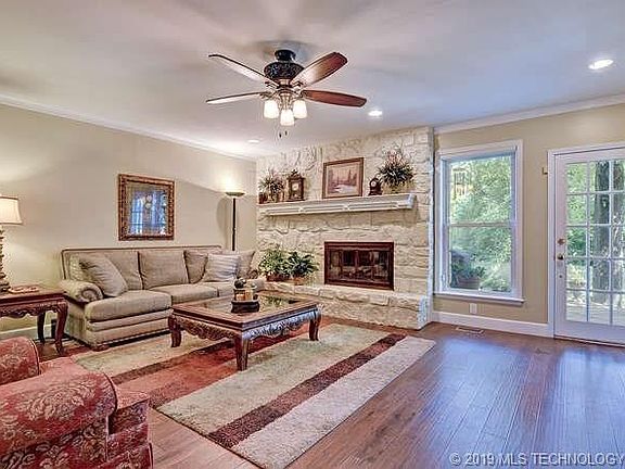 Fantastic French Cottage! Located in Jenks Southeast schools. A sidewalk leads to elementary & middle school. Extra 3 car parking pad. Private park like yard w/ beautiful raised beds. Sprawling deck across the back for grilling & entertaining. Hardwood floors, Updated kitchen w/ SS Appliances, 2 convection ovens & a warming drawer. Lg laundry space off kitchen w/3 pantries & separate hobby/craft room. Master suite on first floor. Bedrooms 2,3,4, & 5 are upstairs + game room with a second fireplace.