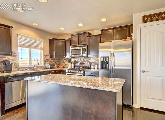 Built In 2014,This Saint Aubyn,2-story Home Has All The Modern Updates,Ss Appliances,Granite Counter Tops And Island In The Kitchen For Extra Counter Space,And Wood Flooring Throughout The Main Level. All 4 Bedrooms On The Upper Level,Including The Master Bedroom W/ Attached 5-piece Bath. Laundry On The Upper Level. Enjoy Views Of The Open Space From Your Kitchen/Living Room Areas,And Un-obstructed Views To The Front Range. Enjoy A Newer Built Neighborhood,With A Park Area For Everyone's Use,No Hoa! Don't Miss It,Welcome Home! Built In 2014,This 2-story Home Features Beautiful Wood Flooring Throughout The Main Level,Ss Appliances,Granite Counter Tops,And A Great Open Layout. Lots Of Natural Night Within The Kitchen/Dining/Living Room Area That Also Walks Out To Your Patio And Views To The Open Space And Front Range. Enjoy Un-obstructed Views Of The Majestic Pikes Peak From Your Backyard! The Upper Level Features All 4 Bedrooms,Including A Large Master Suite W/ Vaulted Ceilings And 5-piece Master Bath. For Your Convenience,Laundry Is On The Upper Level. Enjoy A Newer Built Neighborhood,Which Also Features A Small Park Area,For Everyone's Use. No Hoa! Come See This One Today!