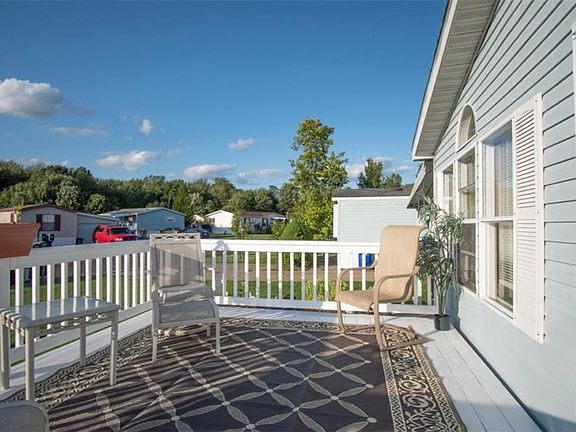 Beautifully maintained mobile/manufactured ranch in Camelot village, located on cul de sac in a very quiet area. You ll be pleasantly greeted by a large deck upfont that has been recently painted and taken care of throughout recent year, to the side of the home you will find a good sized patio to enjoy those warm days/night and a shed in the back for the storage. The home features a great size master bedroom w double-closet, plus 2 more bedrooms, 2 full bathrooms. Family room is very roomy, nicely flows into a kitchen and dining room. The Owner did a lot of updates in the home which include: new furnace, new tub, new dishwasher and garbage disposal and windows were caulked and repainted. Come see it today! Move in ready!