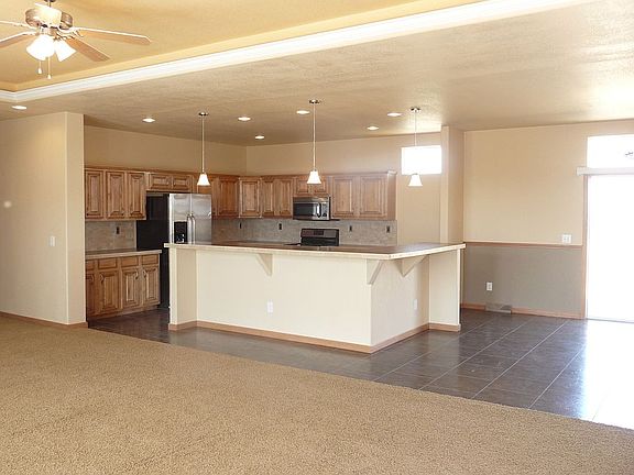 New home 8 miles from town. 9 foot tall ceilings with 2 coffers in ceiling. stainless appliances. large 12x20 deck off dining room. 32x30 attached garage. soil great for gardening. 20x30 parking pad in front of garage. plenty of room to add pole barn and for animals. horses are allowed.Home is on 2.3 acres.