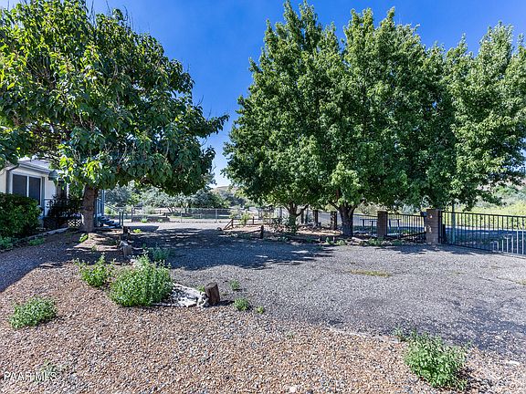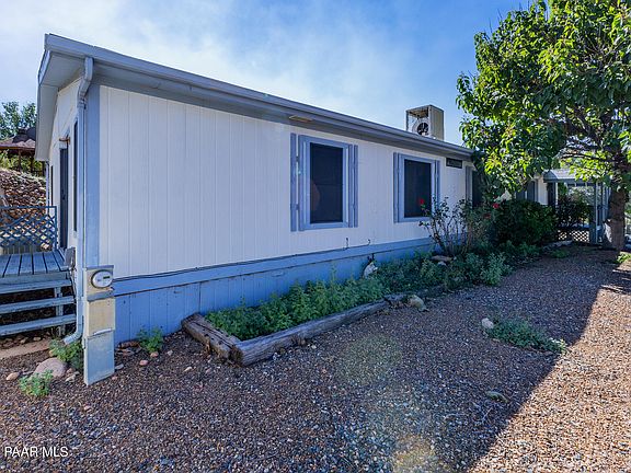Nice home in popular Prescott Country Club!! This 3 bedroom, 2 bath double wide home was built in 1987, is 1811 sf and includes a family room, 1 car detached garage with a workshop, and a circular driveway. Hot tub is included in sale. The good-sized living room/dining combo features a charming brick gas fireplace for cozy winter nights. The kitchen includes lots of storage cabinets with pantry, and a cute breakfast nook. The family room shares the two way fireplace, and exits onto the covered back deck. The primary bedroom incudes his and hers vanities, and a step-up jetted garden tub, plus separate shower and walk in closet. The laundry includes washer/dryer, cabinets, and an exit to outside-bootroom possibilities! Outside there is a fenced yard, hot tub, and cute gazebo to relax in.