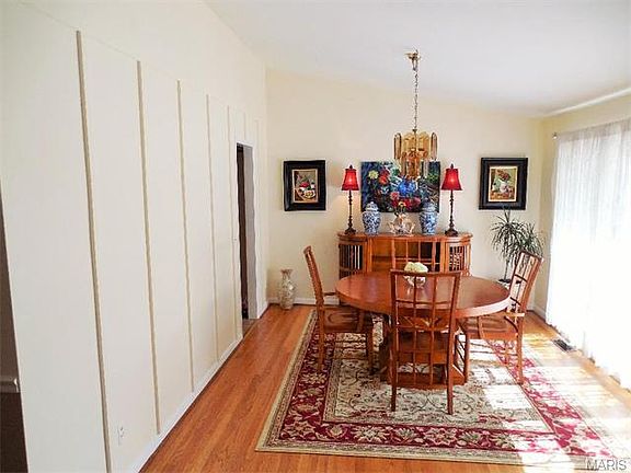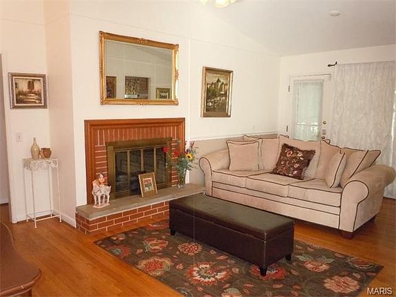 Gorgeous Crestwood ranch with level fenced yard. Beautiful wood floors and vaulted ceilings welcome you into this 3 bed 3 bath home. Improvements include insulated windows, 6 panel doors, new roof, soffits, gutters & fascia 2010 and sump pump 2013. All bedrooms are generously sized with ample closet space. The master has an ensuite bath. The updated kitchen boasts loads of cabinets, white appliances, and breakfast bar for your convenience. Bright Dining room has triple picture window. Vaulted ceilings, a brick wood burning fireplace, and large windows showcase the living-room. The lower Level offers a third full bathroom and Laundry room, huge family / recreation room with wood burning fireplace, additional storage and workshop area for your hobbies. Relax in your 3 seasons room and read or watch the leaves turn. You will love the 2 car oversize garage! Conveniently located in Lindbergh School District close to shopping, Parks, and HWY access. Don't miss this fabulous home!
