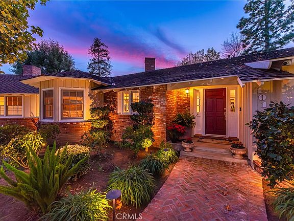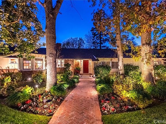 Step inside to explore a world of elegance and comfort. The heart of this Traditional California Ranch is its kitchen brimming with character – vaulted wood ceiling, stone counters, and a large center island set the tone for opulent gatherings. It's an absolute chef's dream, equipped with Viking appliances, plenty of workspaces, and custom cabinetry. The kitchen also features a comfortable eat-in area, perfect for casual family meals. Adjacent to the kitchen, the formal dining room exudes elegance with a beveled picture window, offering a touch of natural beauty for every meal. A crafted, custom-built fireplace and mantel set the scene for elegant evenings in the formal living room, together with polished wood floors throughout. French doors lead out to a game room adorned with a resilient stone floor and a pool table.