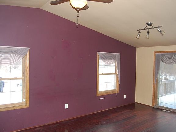 Family room with pellet stove, sliding door out to deck to large backyard. Walkout basement, central air, lot backs up to state game lands. All windows updated. and updated bathroom. Public water with well.
