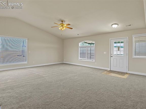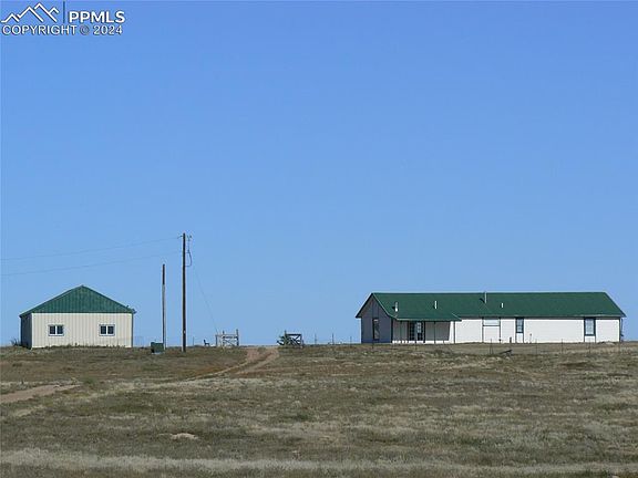 Enjoy time away from the hustle and bustle of city life in your new country living home, with wide open views of Pikes Peak. You'll enter this stick built home to an open concept floorplan with soaring vaulted ceilings. The spacious living room leads to the large kitchen with an abundance of cabinetry and counter space, featuring a breakfast bar. The wood burning stove accents the dining area with a walk-out to those beautiful mountain views. The primary bedroom has 2 closets and a dressing area that leads to the attached full bath. Two other very spacious bedrooms also having large closet space, an additional full bath and a separate laundry room round out this home. The oversized, detached 4 car garage is fully foam insulated with concrete flooring. This fully fenced property is zoned for horses and offers endless opportunities! Come check out this newly renovated home. Great property with incredible potential.