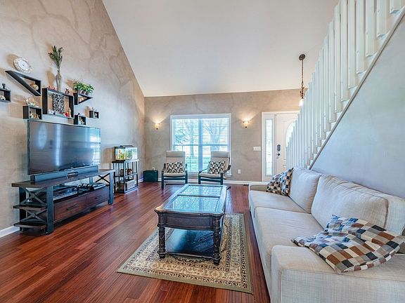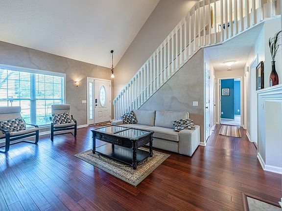 Welcome home to 10115 Rimfire Rd! 1.5 story walkout on a premium private creekside lot and move-in ready. Step into the vaulted two-story great room featuring a pass-through gas fireplace to the dining room. The eat-in kitchen includes palladium windows for spectacular private views of the woods in back, white cabinetry, updated appliances, granite countertops, double pantry, and deck access. First floor also features a nice sized bedroom and updated full bath. Second floor offers a Master Suite with an updated master bath, third bedroom with a full bath, and huge laundry room that offers extra attic storage. Lower level walkout provides plenty of room for entertainment, hobbies, and additional office/bedroom space!