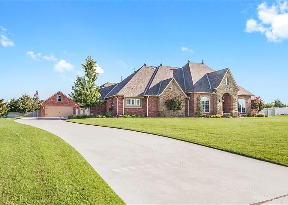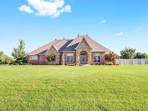 The Seller's have landed the perfect dream job, and it's called retirement! This home is for sale! On a private culdesac, the home is surrounded by a fully fenced backyard for massive privacy. It was architect designed and includes an additional insulated shop with Heat & AC recently built leaving the home with enough storage and space for over 5 vehicles. Now, with two covered outdoor patio's, a yard ready for a pool and playground--let the BBQ's and football begin! Did I mention the special raised garden beds with the installed water system? There's more-- the location is in the epicenter of a great school district, near Tinker AFB and restaurants. But, its still out in the country. One of the most FUN features of all--is the view from inside! Windows everywhere! Warm & Bright! Upstairs, an apartment like style room is available for guests, family or adult children. The home is inviting you to set by the fireplace this winter and own the residence of a lifetime for many reasons!