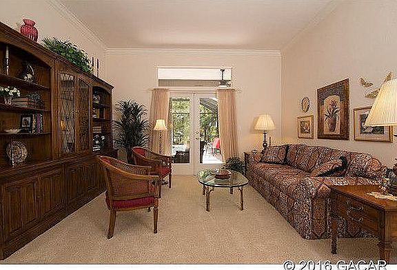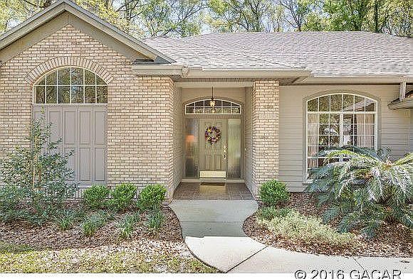 In excellent condition inside and outside and a perfect location. This home is walking distance to Haile country club in the desirable, family oriented Amelia Gardens neighborhood of Haile Plantation. The house is spacious and cozy at the same time, with a large recently updated screened pool area, great for relaxation or entertaining. The Kitchen has a large breakfast bar and breakfast nook, there is also a formal dining room and a family room with French doors to the pool. The family room has a fireplace. This 2-way split floor plan separates the over-sized master bedroom from the other three bedrooms and bathroom. Each bedroom is large with plenty of space for kids, office, guests, or storage space. Two-car garage. Laundry room. Amelia Gardens is a quiet professional neighborhood. Renter responsible for pool maintenance and all other utilities (GRU). Washer and Dryer hookups available. Cats and Dogs welcome.
