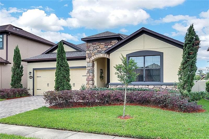 ONE STORY HOME, SHOWS LIKE A MODEL! This meticulously maintained 3 BED 2 BATH home with nearly 1800 square feet of living space features a STACKED STONE fa??ade with pavered drive for fantastic curb appeal. You???ll be impressed from the moment you arrive. The foyer features Coffered Ceilings with Crown Molding and leads to the LARGE, OPEN KITCHEN/FAMILY ROOM COMBO! This Open Concept plan features volume ceilings with interesting architectural detail. With neutral and serene colors the HUGE Family Room features Crown molding and opens to the kitchen - featuring Granite countertops, tile backsplash, stainless steel appliances, plentiful Espresso cabinets with sparkling GLASS fronts, pantry, center island with eat-in bar and adjacent dining area. Entertaining family and friends is easy on the COVERED LANAI and LARGE FENCED in backyard with ***CUSTOM PERGOLA*** and EXTENDED PAVERS. The master suite features Tray ceiling, Crown molding and the master bath includes dual sink vanity with granite countertop, soaking tub, glass enclosed and tiled shower and separate water closet. Guest bedrooms are large enough to easily accommodate overnight guests, and your growing family. Located in Tierra Bella, community amenities include pool with covered pavilion, picnic area, playground and more. Located close to great schools, dining, shopping with easy access to SR-417 and SR-408 - just minutes to downtown Orlando.