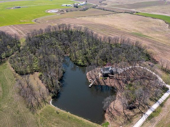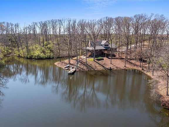 Tranquil 10+ acre retreat offers idyllic mornings w/coffee by your private stocked lake & evenings watching the deer from your covered wrap around porch.Main level open layout,2 story floor-to-ceiling brick fireplace#1 in living area, dining, kitchen/excellent counter & cabinet space, bed, bath,laundry & 2 car garage.Upper level-views,balcony,bed,bath,walkin closet.Lower level/walkout basement is finished.Fireplace#2,large rec room,bar,large storage room,French doors opening to lakeside patio,stunning views & path to dock.Windows in the home allow you to capture the amazing 360º views.Additional bedroom options could be created on the upper or lower level w/minor modifications.Access to all plumbing in the lower level for additional bathroom if desired.There is a small barn w/additional covered parking, a fruit tree orchard w/grapevines across the levy.Please consider this property to experience all that it has to offer w/privacy & tranquility being at the top.duplicate listing24017978
