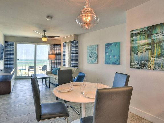 Built in 2018, the Oceana building is one of the newest and most modern building on Treasure Island. This direct West facing corner unit provides you with some of the most spectacular views available, along with the powder white sand and the warm calm waters of the Gulf of Mexico just steps away. Enjoy an expansive beachfront rooftop observation deck, heated pool throughout the year, hot tub, and even use of boat dockage across the street on the bay side. Easy walking distance to shops, restaurants, activities and some great night-life. -- Private Beachfront Balcony -- Comfortable Living Room Area with Views and Direct Access to the Balcony -- Family Dining Area for Four with Additional Bar Seating -- Fully Equipped Kitchen with all Stainless Appliances and Granite Counters The refundable policy is as follows: 1. 100% refundable if you cancel 30 days prior to arrival. 2. 100% refundable if the property is not available or you're not approved to rent. 3. Not refundable if you are within 30 days from arrival or if you signed the leased with the Agent (whichever comes first). Please note this property may require a tenant screening at an extra cost to you. You will be required to sign a lease with the landlord.