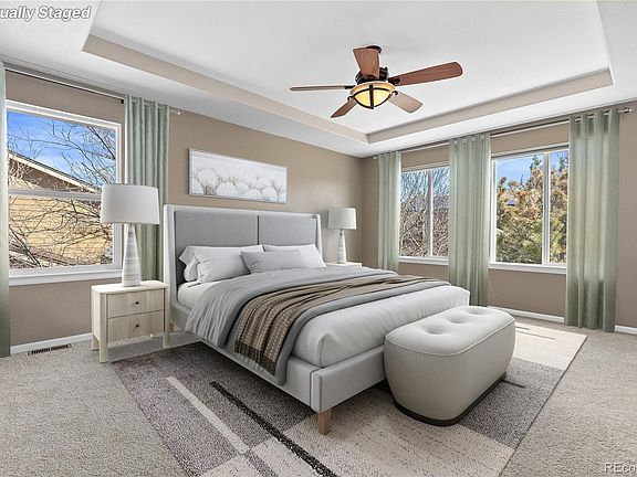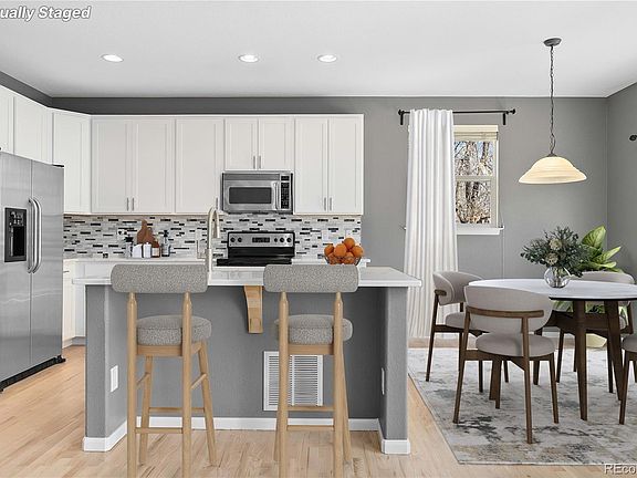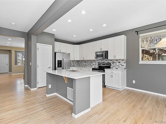 Spacious two-story home in Reunion! This move-in-ready home boasts and abundance of natural light and beautiful hardwood flooring throughout the main level. The open concept living room features a cozy fireplace, perfect for relaxing evenings or entertaining guests. The updated kitchen showcases new cabinets, stainless steel appliances, and stunning quartz countertops. With a breakfast nook in addition to the formal dining room, there's ample space for casual meals or special gatherings. Need a quiet spot to work from home or unwind with a book? The front family room flex space offers endless possibilities as a sitting area or home office. Convenience meets comfort with a main floor bedroom, while upstairs you'll find four bedrooms including a luxurious primary suite complete with a five-piece ensuite bathroom and walk-in closet. Looking to expand? The unfinished basement provides endless potential for additional living and storage space. Outside, the tree-lined backyard is well equipped with a patio and firepit to unwind on summer evenings, while the three-car tandem garage offers plenty of space for vehicles. Located just a short drive from Buffalo Run Golf Course, D.I.A, E-470, and downtown Denver, this home offers easy access to all the amenities and attractions the area has to offer. Plus, being only a couple blocks away from The Southlawn Pool means you'll have access to a fantastic recreation area featuring a "beach entry," swim lanes, sport courts, and more. Don't miss out on the opportunity to make this your forever home!
