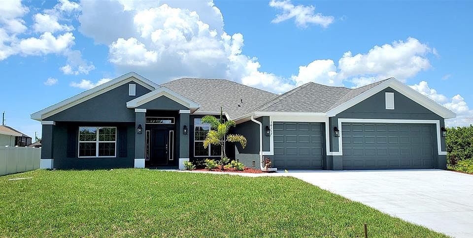 Under Construction. This beautiful New Construction, home has 2265 SQ. FT. of heated space, with 4 bedrooms, 3 bathrooms (POOL BATH) and a 3 Car Garage! The Upgrades Included: Open Floor Plan, Porcelain Plank Tile- All Except Bedrooms, Bathrooms are Tiled, Pair of exterior French- Glass Doors leading to 23' x 8' Covered Lanai, Granite Counter tops in Kitchen and Baths, Stainless Steel Appliances, Dishwasher, Stove, Microwave and Garbage Disposal, Upgraded Cabinets, Step Ceiling in the Primary BDRM, a 5 FT. Tiled Shower w/ Tiled walls and floor in Primary BTHRM ILO of Garden Tub, & Irrigation System w/ Floratam Sod. All of our New Homes come with a 1 year/2 year/10 year Warranties. Move in Worry free! ** REALTORS are required to be present on Initial visit to register your Home buyer and must obtain a completed Co-Broke Form ~~ Subject to Errors & Omissions ~~