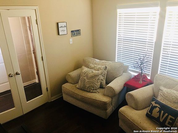 Dual master bedrooms!! 1 upstairs, 1 downstairs, both with private bathroom & walk-in closets! 2 more bedrooms downstairs, plus an office/study. Square footage is nicely utilized. Photos cannot capture the beauty in these kitchen counter tops! Stainless steel appliances, hardwood floors & recent carpet in bedrooms. Neighborhood pool is merely steps away & school bus stops in front of the house.