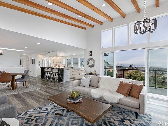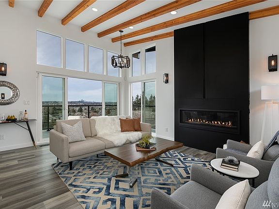 Set atop the hill, just up the street from Kubota Garden, this home is much better appreciated in person. A custom steel fireplace anchors the vaulted great room and flows into the large kitchen and dining. Luxury finishes and craftsmanship, VIKING appliances, Carrara marble, heated tile floors, and exposed beams throughout. Unobstructed views of the city, Olympics, lake, Cascades, and Eastside. The home is positioned well back from the road and features a meticulously landscaped yard and patio.
