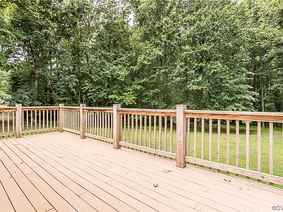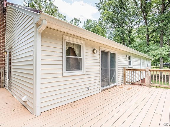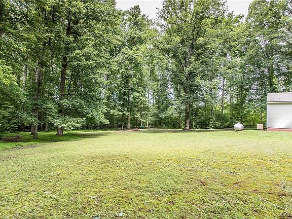 This 1,568sf 3 bedroom 2 bath vinyl ranch is situated on over 6 acres in the Wilsons area of Dinwiddie County. Approx 1/2 mile off Rt. 460. Eat in kitchen with open floor plan to living room for ease of entertaining. Living room features fireplace and front bay window. Laundry room off kitchen with room for storage or pantry. Front porch with ramp and entry to living room. Relax in the fresh country air on the large wrap deck with entries to the living room and eat in kitchen. Fall asleep to the relaxing sounds of rain on the metal roof. Oversized detached 2+ car garage with workshop space for projects. Water filtration. Whole house generator. New metal roof approx. 2020. New well in Dec 2022. New gas stove in June 2023. Property sold as is.