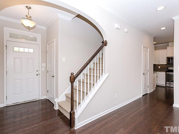 Executive living in Brier Creek with 2-car Garage ! Beautiful former model home. Inviting Open layout Kitchen, dining and formal living all connected. Hardwood on the entire main floor. Kitchen with upgraded staggered cabinets, tile backsplash, butler's pantry and Granite tops. Berber carpet welcomes you to Second floor. Master with coffered ceiling and upgraded bath. Tub and Shower with dual vanity and tile flooring. spacious bedrooms with built in shelves and lamps on one of them. Walk to Amenities !