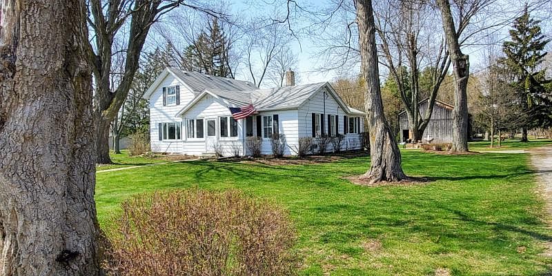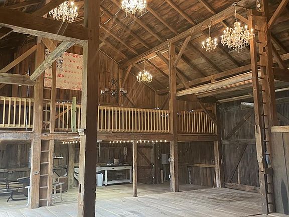 Immaculate farmhouse & impressive restored barn proudly owned by same family since 1940. It's hard to know where to start when describing this unique homestead. First of all, it is spotless! The original 4 & 5" wood floors gleam with years of polish & patina. Elegant crown molding accents main level rooms & antique chandeliers are dotted throughout the vast property. Dining room & living room are combination of formal feel & simple livability. 1st floor primary bedroom has private updated bath, separate water closet, ceramic tile & granite. The kitchen offers popular white cabinetry with subway tile, black granite and SS appliances. Stunning! Walking through the pantry hall, you'll notice abundant storage at your fingertips. Main bath has been updated keeping w/ black/white theme. Dual sinks, granite & tile adorn the bathrooms. Sunroom lets in lots of light & is perfect for morning coffee or afternoon relaxation. Upstairs is finished in original knotty pine which has been taken care of by generations. Both bedrooms are spacious & have built-in desk/shelving-perfect for home office. Fieldstone walls in basement have been professionally waterproofed. Major mechanical updates have been completed: high-efficiency boiler system, well, water softener, water heater, electrical, plumbing & roof. Now let's talk about the real gem! The family completely restored the 1870's post & beam barn. The result is a magnificent entertaining space, elegant venue, or storage only found in your wildest dreams! This barn is gorgeous! Weddings, graduations, birthdays, family reunions, and photography sessions will be well remembered for years when it is hosted in this enchanting space. Could also be used to store all your toys and more! When looking for some quiet time, take a walk around the lush, well-manicured landscape that makes up this rare find of 11 acres. The land is sprawling, groomed and is complemented well by trees, trails, picnic areas meadows & creek.