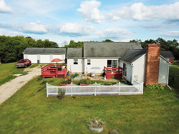 Just listed! 27.2 Acres+/- in Barry County located between Battle Creek and Bellevue. Property is currently set up for livestock and hunting. 6 outbuildings with fenced rolling hill pastures. Home includes 3 bedrooms with 1 bath. Home features: fireplace in living room; propane hot water boiler system; wood furnace with duct work; updated wiring and 150 amp service; large open floor plan; updated kitchen, laundry and bath floors; all appliances; generator hook up; large oak kitchen with eating area; solid wood interior doors; main floor laundry; porches and more! Newer 30' x 40' pole barn with 10' ceilings; separate commercial electric service; 3 overhead doors with 2 openers; concrete floors and wood stove. Large livestock building with concrete floors; water; electric and loft hay