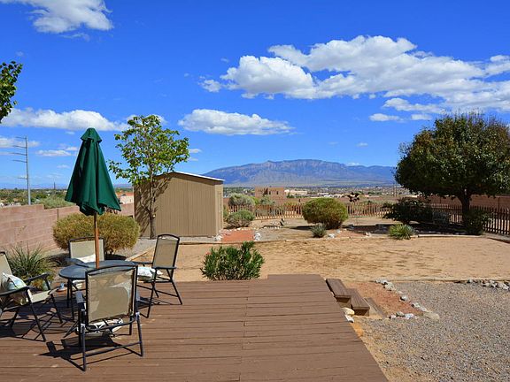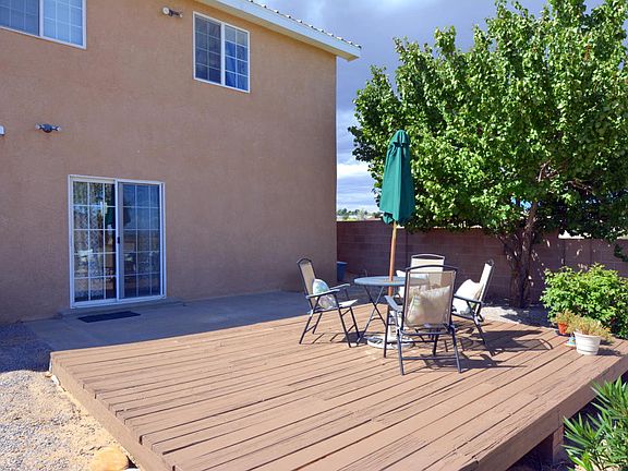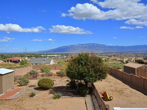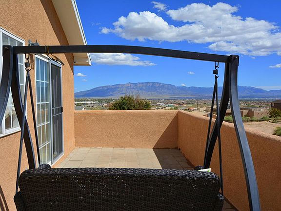 VIEWS VIEWS! Fabulous Northern New Mexico style home with panoramic views of the Rio Grande Valley and mountains. From the sunny kitchen, step through sliding glass door onto balcony and relax on the porch swing (included!); Awesome split floor plan** Upstairs: kitchen that opens to living room, Owner's Suite (w/two customized closets, separate shower and jetted bathtub), additional bedroom, 1/2 bath; Downstairs: two bedrooms (all bedrooms feature mirrored closet doors), full bath, laundry accessed from ceramic tiled family room (w/ potential for wet bar), Under-stairs closet for extra storage, Direct access to over-sized 3 car garage**Recent updates include re-stucco w/warranty (06/16), neutral twist-style carpet in upstairs Bdrs and LR (08/16); remodeled bathrooms;
