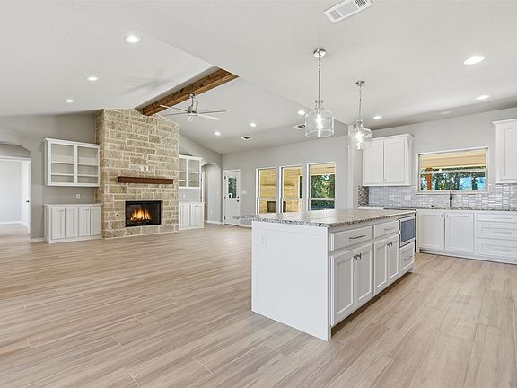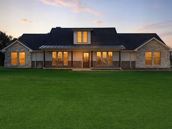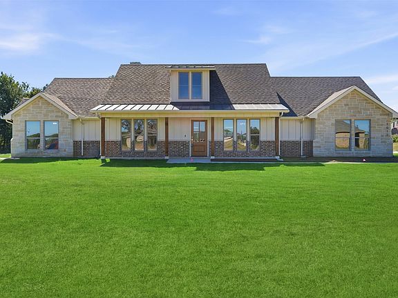 This brand-new beauty is ready to welcome you home with style and a touch of country charm. Nestled on 1.3 acres in a small neighborhood at the end of a peaceful cul-de-sac, this home blends comfort, function, and good looks all in one. Gutters, sprinklers, sod is in place, this home is ready for you. Step onto the long front porch-perfect for morning coffee and evening chats, then head out back to the spacious covered porch, featuring a fireplace and built-in sink. Inside you'll find an inviting open-concept layout with timber-beamed ceilings, a cozy gas log fireplace, and a large kitchen island, with gas cooktop and propane tank in place, it's just waiting for family gatherings or a good baking day! Kitchen is a dream with granite countertops, a gas cooktop, and a charming window view of the backyard. The primary suite is your retreat, complete with a soaking tub, separate shower, and even built-in dresser drawers for extra convivence. With brick and stone accents, this home's curb appeal is timeless, and that big lot gives you plenty of room to stretch out, grown a garden, add a shop, or just enjoy a little extra elbow room. Bring your horses, and chickens! No HOA, No restrictions, come make this home yours! GPS Friendly! From FM 51 and TX HWY-199 in Springtown, go south on FM 51. Take a left on Sandlin. Left on Young Rd. Right on Abbie Ruth Ct. House is at the end of the road, on the right in the cul-de-sac.
