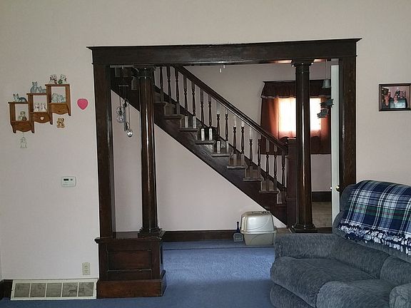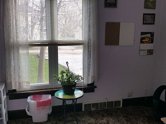 Farmhouse style home with original woodwork, updated windows, vinyl siding, fresh interior paint, new flooring, main floor laundry and half bath, enclosed front porch for familyroom, toy room or office space, full bath on upper level with claw foot tub/shower, hallway has blt in linen closet, fresh attic insulation. Tree filled corner lot, school bus stops half block away.