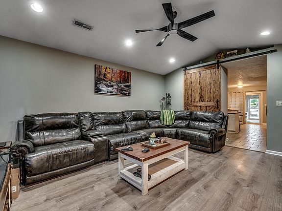 Great counter spaceLight-filled carolina roomSpacious bedroomsSliding barn doorStep in shower
