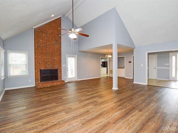With amazing street presence, this home you won't want to miss. This delightful four bedroom two bath home is nestled on a quiet cul de sac street, the private backyard is equipped with a large deck overlooking to a forest of trees. Inside you will be delighted to see bright eat in kitchen with stainless steel appliances, kitchen island and loaded with cabinets and counter space! The formal dining area is complete with its own wet bar. Living room has cathedral ceilings, a grand brick fireplace and hardwood flooring. The primary bedroom boasts high vaulted ceiling and master bath large soaking bathtub. Conveniently located to 485 providing easy access to shopping, dining, the airport, uptown and more!