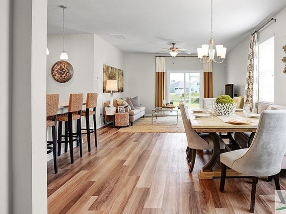 The "Radiant" Robie Plan by D. R. Horton features 5 bedrooms 3 bathrooms. Vinyl flooring throughout the common areas. Large open kitchen features granite, counter height island, loads of cabinet space, walk-in pantry and stainless-steel hood vent microwave, glass top range and dishwasher. First floor features a guest bedroom and full bath. Primary bedroom, located on the 2nd floor, has a walk-in closet and the primary bath offers dual sink vanity, 5 ft walk in shower with glass door and separate water closet. Hall bath upstairs also offers dual sink vanity. Includes 2" faux wood blinds in all standard windows and a fully sodded yard with irrigation. Smart home features include, but not limited to, Amazon Echo Dot, Skybell Doorbell, Z-Wave Deadbolt, and Smart Garage Door Opener! . *Pictures, photographs, colors, features, and sizes are for illustration purposes only and will vary from the homes as built*