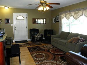Exceptional upgrades, custom kitchen w/granite, glass tile backsplash, high end stainless steel appliances and propane gas stove. The main bath is completely remodeled with new tub, pedestal sink and travertine flooring. The entire top floor is the master suite complete with a sitting room, French door shower and ceramic tile floor. Recessed lighting throughout the kitchen and master suite.